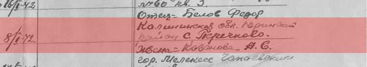 Благодаря одному из медальонов, поисковики установили личность лейтенанта Белова Сергея Федоровича 1920 года рождения, проживавшего до войны в селе Перечково Калининской области. По архивной информации он числился убитым с 1942 года, место захоронения оставалось неизвестным.