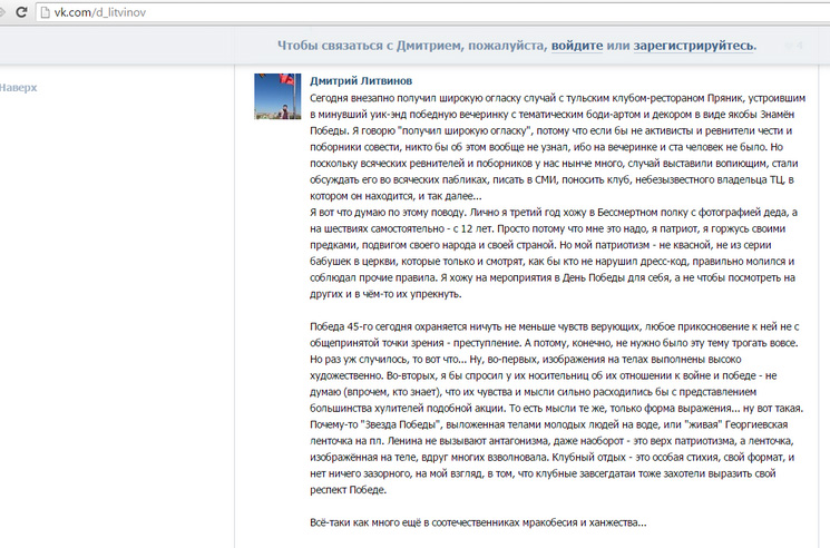 Сначала Д. Литвинов довольно открыто выражает сожаление, что о данных проделках узнала широкая общественность.