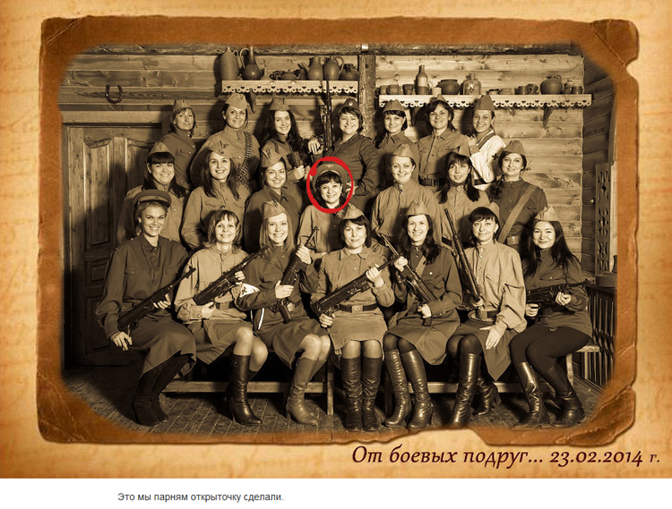 И что мы видим, взрослая тетка, 1978 года рождения, считает для себя фото в форме вполне нормальным. Цитата: «Это мы парням открыточку сделали».