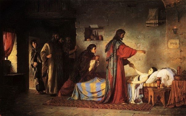 В.Д. Поленов, закончив ученический курс в Академии художеств, одновременно с Ильей Репиным, получает большую золотую медаль за конкурсную работу: «Воскрешение дочери Иаира».