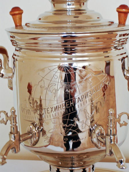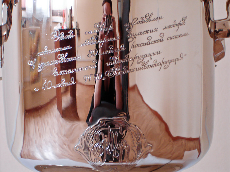 Как раз во время изготовления самовара ФГУП «Ростехинвентаризация — Федеральное БТИ» радикально поменяло фирменный стиль и логотип. Пожалуй, это последнее изделие со старым логотипом.