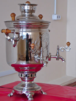 Посоветовавшись с ними определились окончательно: 8-милитровый самовар с тремя кранами, равномерно расположенными по окружности, с мощным электрическим нагревателем (время закипания — до 10 минут) и автоматическим переключением в режим поддержания температуры 95°С.
