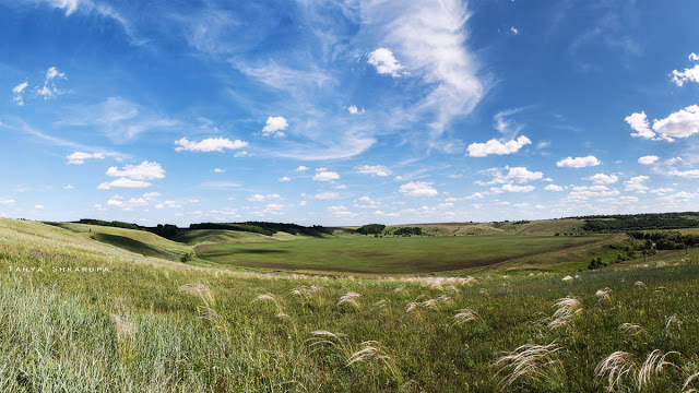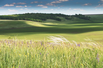 Каждый порыв ветра гоняет волны ковыльного поля и чудится в этих размашистых движениях либо взлет пушистых белых мотыльков, либо грива белого коня и ветерок причесывает его длинную белую гриву. Ходит волнами ковыль и отливает на солнце шелком, хочется плести из него воздушные узоры и укрываться этим покрывалом от степного ветра по ночам. Невозможно надышаться запахом степи, запахом ковыля и полыни. Чувствуется в степных травах свобода и воля.