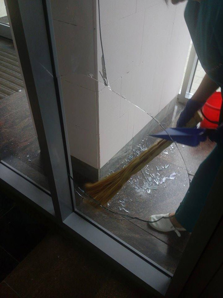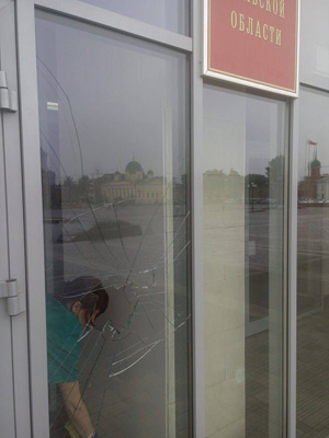 Во вторник в середине дня Сергей Нестеров, вооружившись куском строительной плитки, разбил стеклянную дверь в здании на площади Ленина, где размещаются органы городской и областной власти.