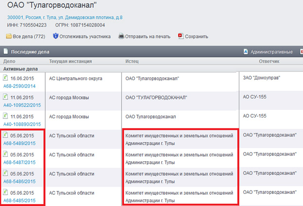 Список арбитражных дел ОАО «Тулагорводоканал»  на май 2015 года arb-02Источник: http://kad.arbitr.ru/SideCard/c468d1eb-8a03-4087-a785-0fe272f2488b