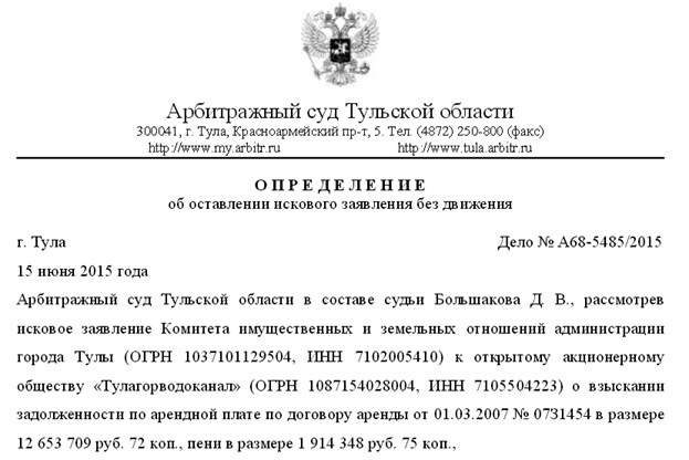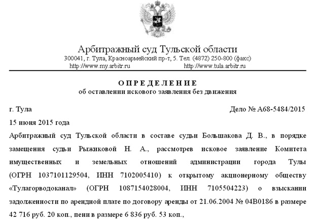 Ситуация с ОАО «Тулаговодоканал» еще более интересная. Помимо должников во главе с УКашками и СУ-155, судиться с «Водоканалом» надумал Комитет имущественных и земельных отношений г. Тулы, что совершенно немыслимо без отмашки с седьмого (губернаторского) этажа.
