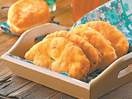Мелко нарежем две луковицы и поджарим на масле до цвета. 700 граммов очищенного картофеля отварим до готовности, сольем воду, раздавим в пюре и смешаем с жареным луком, не забыв посолить и поперчить. Тесто поделим на куски в кулак величиной и раскатаем каждый в довольно тонкую лепешку. В центр каждой лепешки положим столовую ложку начинки, защиплем и раскатаем в нетолстый пирожок длиной примерно с тарелку, а шириной вдвое у´же. Обжарим каждый такой пирожок на сковородке с разогретым маслом с двух сторон до румяной корочки и подадим на стол горячими.