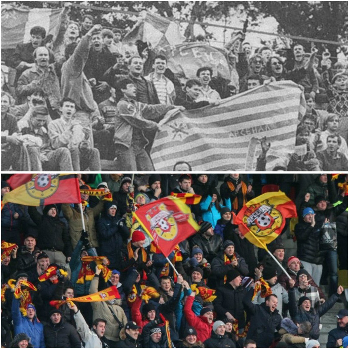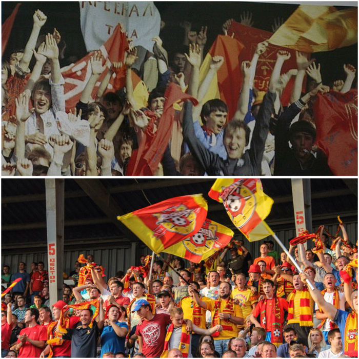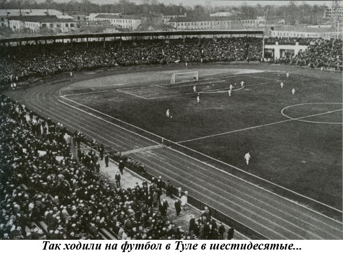 Аленичев не автор? НЕТ. Наверно, многие будут со мной не согласны. Давайте я вам объясню свою точку зрения: реального автора у этой сказки вовсе нет. А началась она не 4 года назад, точная дата неизвестна, да и никто не знает, на то она и сказка. Дата её появления даже не связана с основанием тульского Арсенала, она началась с зарождением тульского боления за команду из родного города. Города, который они любят, которым они гордятся, чьи традиции они чтут и передают из поколения в поколение. А боление за родную команду, это и есть традиция. Посмотрите на эту фотографию – на ней изображён тульский стадион времён 60-х годов (играет Металлург «Тула»). Уже тогда на матчи собиралось по 20000 тысяч — просто фантастика.ars-02 ars-03 ars-04