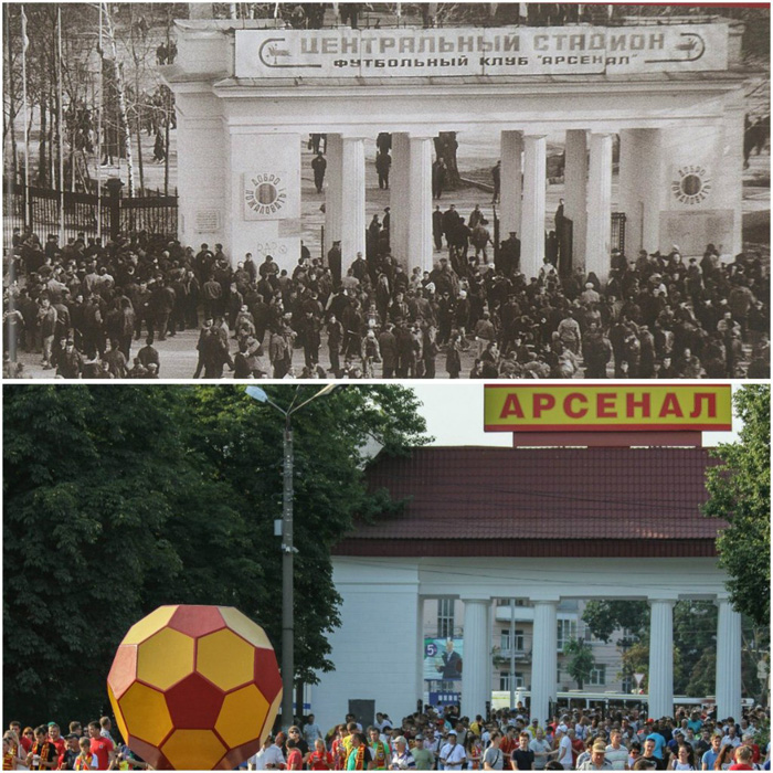 Окунёмся ещё на 10 лет назад. По сообщениям «Тульского коммунара» 27 августа 1950, тульские болельщики смотрели футбол на стадионе в тульском Кремле, где тульский «Зенит» в заключительном матче зонального турнира первенства РСФСР принимал сталиногорский (ныне новомосковский) «Химик». Дизайнеры самого большого телеканала о российском футболе, наверно, даже не догадываются, какое они символичное место выбрали для представления Арсенала в заставке с презентацией команд в прошлом сезоне. В этом видеоролике на территории тульского Кремля компьютерной графикой расчерчивается поле, появляется герб Арсенала и скрещиваются мечи с пронзительным звоном — очень символично. Как выглядел стадион в Кремле в те годы, и опять же, заполненные трибуны, вы можете увидеть на фотографиях.