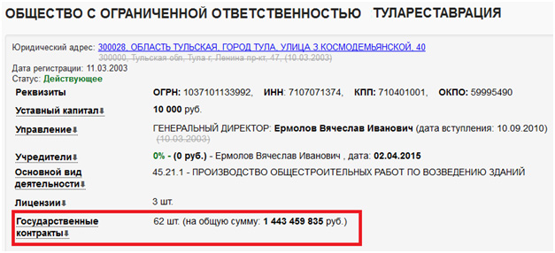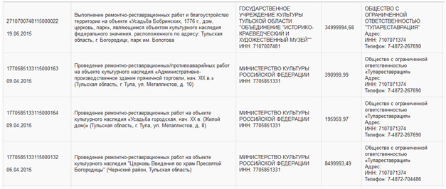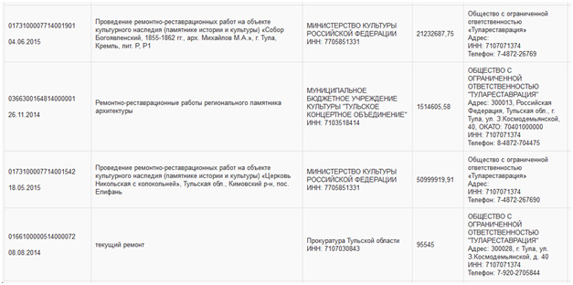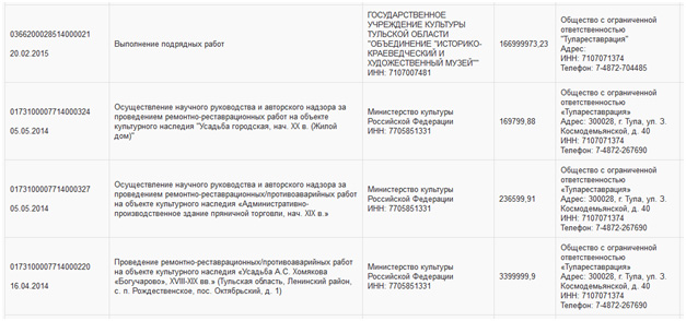 Желающие проверить данную информацию могут позвонить по телефону, зарегистрированному на ООО «Тулареставрация»: 8 903 658-44-24. Заодно, может быть, договоритесь о надёжной «крыше», которая прикроет вас, если что…