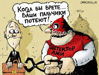 Злые языки утверждают, что новая система секретных тестов на подсознательном уровне кодирует испытуемого от стремлений незаконного обогащения, вызывая тошноту и обморок, что ближайшем будущем значительно облегчит работу правоохранительных органов.