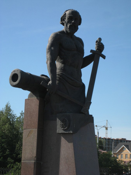 ФОТО 2. Памятник Левше — литературному персонажу из одноименного рассказа Н.С. Лескова. Стоит почти напротив «баховского» Петра Первого, однако на другой стороне Советской улицы. Отлили бронзовую скульптуру еще в 1989 г., однако до 2009 г. она украшала территорию «Туламашзавода», пока не была перенесена на свое нынешнее место.  pam-levsha ФОТО 3. Левша — кузнец вымышленный (хоть и был у него, говорят, прототип), а вот Никита Демидов (1656-1725) — кузнец вполне реальный. И хотя кузницу он со временем сменил на контору предпринимателя — хозяина железоделательных заводов, тем не менее, о своих трудовых корнях помнил, что и отражено в памятнике (1996 г., скульптор А.И. Чернопятов).  Он стоит на площади перед родовой для Демидовых Николо-Зарецкой церковью. Тут же рядом — Музей оружия.