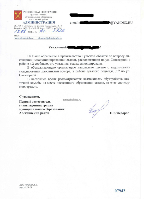 ЧУДО свершилось год назад. Администрация города, наконец, принимает решение о ликвидации помойки рядом с жилыми домами, а заодно бонусом решает на злосчастном месте установить цветочную клумбы. Дело было осенью, за клумбу огромное спасибо, если бы не НО…kl-02Уведомление о ликвидации свалки и решении установить клумбу, за подписью нынешнего главы города Алексин, Федорова