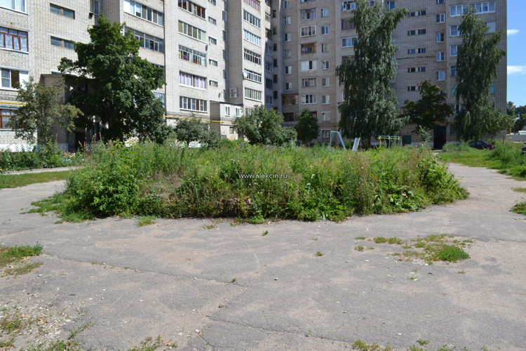 Прилегающей дворовой территорией никто ВООБЩЕ не занимается в Алексине, за исключением центральных улочек, которые «на виду».