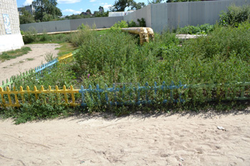 Игра на детской площадке получится, только если пробраться сквозь непонятную растительность высотой до 1 метра… kl-09Детская площадка во дворе дома по ул. Санаторная 2