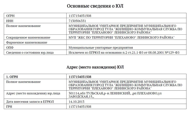 Юридический адрес: 300131, Тульская обл., Ленинский район, пос. Ленинский, ул. Борисова д, 2