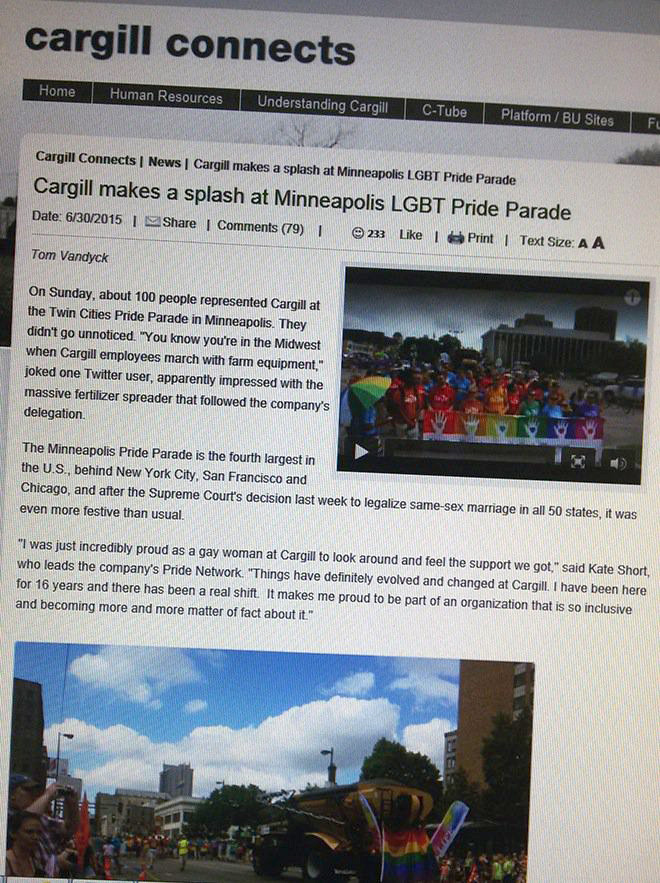 Ольховой, просто высказавший свое мнение по поводу мероприятия, проводимого где-то далеко и ничего не имеющего общего с российской действительностью, не ожидал, что его комментарий вызовет такой резонанс. Константина вызвали к руководству и долгое время объясняли, как он плохо поступил, оскорбив те ценности, которые активно пропагандирует компания Cargill. Нетолерантный сотрудник пытался объяснить что не оскорблял саму компанию Cargill, а лишь высказал свое мнение по поводу озвученного вопроса. К разбору полетов подключился «московский десант» и Ольховому прямо объяснили что с такими взглядами на проблему ЛГБТ-сообщества он работать в компании не будет. Начались длительные уговоры, переговоры и убеждения, которые в конечном итоге вынудили Ольхового подписать соглашение и покинуть свое рабочее место на всегда. Как считает сам Константин, его вынудили подписать это соглашение под жестким давлением.