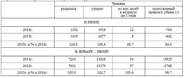 dem-01В январе-июне 2015 года в Тульской области родился 7631 человек и умерло 13379 человек. Естественная убыль населения составила 5748 человек, что на 77 человек меньше, чем в январе-июне 2014 года.