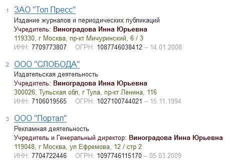 Основным учредителем и инвестором ООО «Слобода» стала Инна Виноградова.
