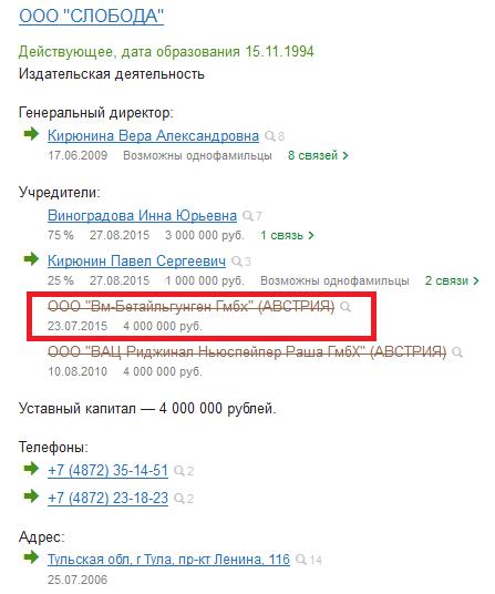 vera-05Ну, а вот эта информация будет для многих «расследователей» сюрпризом:vera-06Одним из учредителей данного хозяйствующего субъекта является… газета «Тульские известия.