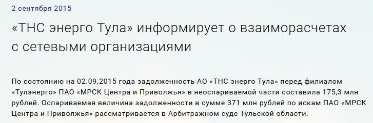 Например: https://tula.tns-e.ru/news/population/tns-energotula-informiruet-o-vzaimoraschetakh/