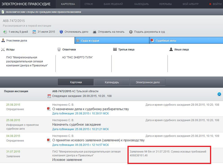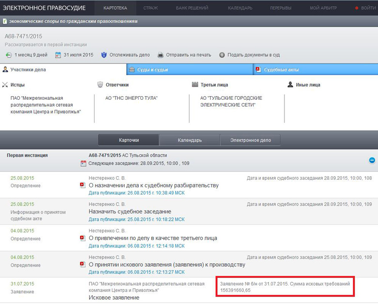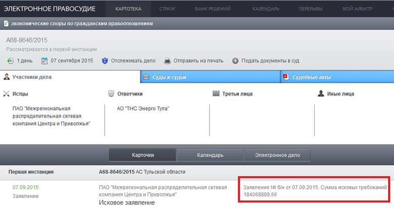 Предлагаем вам, дорогие читатели, оценить новый этап судебных разбирательств. Достаточно пройти вот по этой ссылке: http://kad.arbitr.ru/Card/96c6a96f-95f3-4c99-b5dd-094c1660c5c3