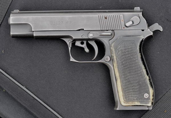 Выброс магазина с кнопкой под любую руку и, опять же впервые, магазин вываливается сам по нажатии кнопки, как и положено у взрослого пистолета. Нормальный удобный курок. Предохранитель с функцией безопасного спуска курка. Очень высокая точность для боевого оружия. Удерживать на цели — проще простого. Из него гильза вылетает не в лоб, а в сторону. Ресурс, пожалуй, самый большой из всех пистолетов, производящихся в России в настоящее время. Меня удивляют эти мнения, что пистолет должен быть легким, помещаться в косметичке и т. д. ОЦ-27 — он настоящий, стальной, его берешь в руки и понимаешь, что он навсегда. Тяжелый, но зато у него нормальный пистолетный баланс. Просто пистолет, как он должен быть. Сделанный человеком, любящим пистолеты, понимающими, что надо стрелку и знающим, как это надо сделать. Никаких «не имеющих аналогов», никаких «впервые в мире», просто нормальный, честный пистолет. На него смотришь и чувствуешь – мужской. Выстрелишь – да, для мужского дела пистолет… Когда он мне первый раз попался, я удивился, мол, а что это такое, иномарка? Нет, говорят, наш. Тогда я испытал редкое для меня ощущение — удовольствие от отечественного изделия. Просто вот сделали правильный пистолет».