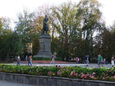 У одного из входов в парк — памятник писателю В.В. Вересаеву, он жил недалеко от парка.