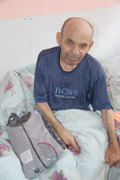 Дедушка — колясочник, живет в палате вместе с Афониным Владимиром Александровичем – дедушкой, который с помощью медсестры разводит рыбок , а мы с вами помогаем ему – привезли еще один аквариум, золотых рыбок, водоросли и еще много всего….)