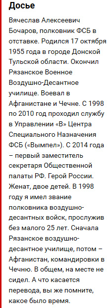 Вячеслав Бочаров: В то время терроризм цвёл ярким цветом. В России гремели взрывы, приходили сообщения о захватах заложников, терактах, нападениях боевиков. Я решил, что мой опыт может пригодиться. Написал рапорт командующему с просьбой перевести меня в «Вымпел». Изначально хотел именно туда, хотя «Альфа» традиционно считалась более престижным подразделением. Но она специализировалась на выполнении боевых задач в городских условиях, освобождении заложников в зданиях, замкнутых пространствах. У «Вымпела» было гораздо большее поле деятельности – сотрудники Управления «В» проводили операции в горной местности, в лесах, на плоскогорьях. Там мой афганский и чеченский опыт мог очень пригодиться. Что, в общем-то, и произошло.