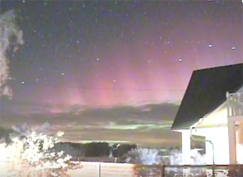 Кульминация вчерашнего Полярного сияния в Тульской области. Снято на охранную камеру с 21:38 по 21:43 мск. Автор видео: Олег Борисов.