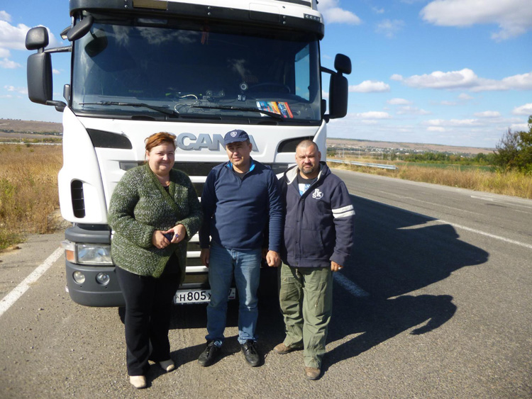 На границе наш груз встречала Татьяна Александровна Поволоцкая, руководитель с.Роскошное.