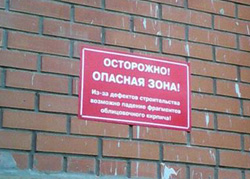 Многим, наверное, известны таблички блокадного Ленинграда: «При артобстреле эта сторона улицы наиболее опасна». Сегодня, слава Богу не война. И артиллерия на Тульской земле кроме полигонов нигде не стреляет. Зато… падают кирпичи. И заботливые власти Новомосковска об этом предупреждают.