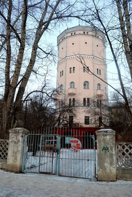 Водонапорная башня на улице Академика Павлова была построена в 1950 году. Помимо прямого предназначения – регулирования напора и расхода воды в водопроводной сети – в ней располагалось химическая Лаборатория для пробы качества воды.