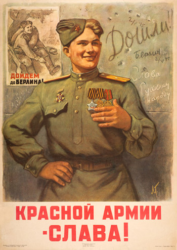Плакат «Красной армии – слава! Дошли!», художник Леонид Голованов, 1945