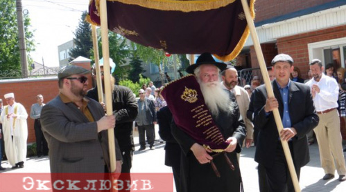 Зеэв Вагнер на церемонии внесения Свитка Торы в синагогу Тулы