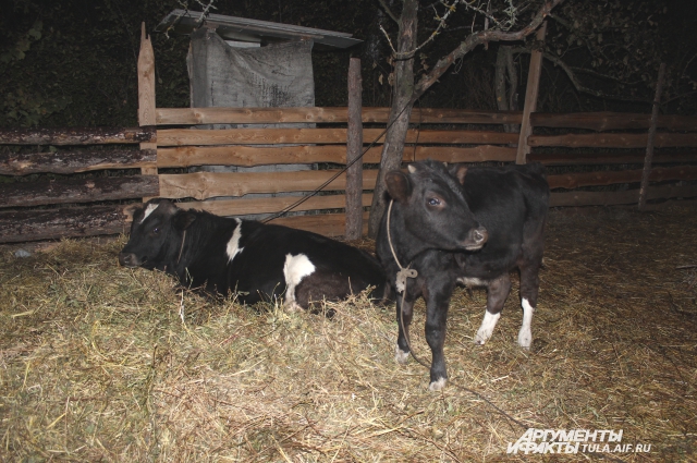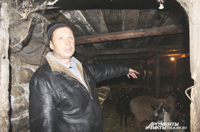 Старый заброшенный дом переоборудован под хлев. В нём лошадь, овцы, коровы, гуси, утки, 120 кур, 4 поросёнка.