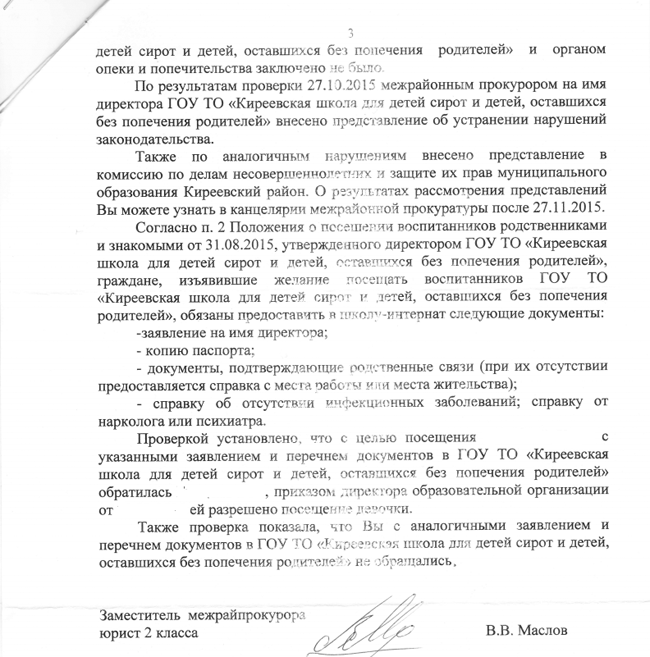 Прокуратуре также не показались странными требования приюта запрашивать у родителей кучу справок для посещения своего незаконно изъятого ребенка. Например, справка об отсутствии инфекционных заболеваний действует всего несколько дней.