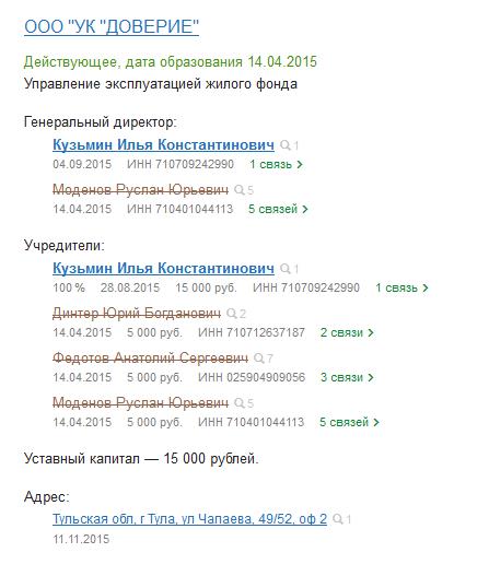 Но вернемся к УК «Доверие». Текущий юридический адрес фирмы известен тулякам как «Серп и молот».