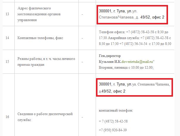 А вот фактический адрес, если верить сайту «Реформа ЖКХ» другой: