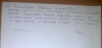 Вторая расписка Калимулина написана не от руки, хотя у него читаемый почерк.