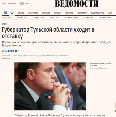 Но не одни профессиональные «разводчики на бабки» кандидатов на выборные должности замечены в парадоксальных выводах касаемо Тулы. В понедельник вечером отличились уважаемые «Ведомости». «Губернатор Тульской области Владимир Груздев до четверга уйдет в отставку по собственному желанию», — объявили они. И, возможно, чтобы сразить туляков наповал, добавили: «…исполняющим обязанности губернатора в Тульской области назначат эсера, депутата Госдумы Игоря Зотова». Того самого, который на сайте «Одноклассники» успешно играл в 39(!) игр. Среди них: «Волшебные шарики», «Преферанс», «Колхоз Червонэ дышло», «Рыбная ферма», «Счастливая ферма», «Больничка», «Мир пузырей». Самое то занятие для главы области, не находите.