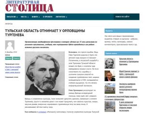 Пока Орловщина дискутирует по поводу бренда литературной столицы, пока ищет, кем «закрыть брешь» в управлении культуры, пока позволяет дряхлеть зданиям, связанным с именем Тургенева, грустит о нехватке денег и не может придумать, чем завлечь туристов, соседи, засучив рукава, энергично «прививают» тургеневскую тему на свою почву. И рассказывают об этом всему миру.