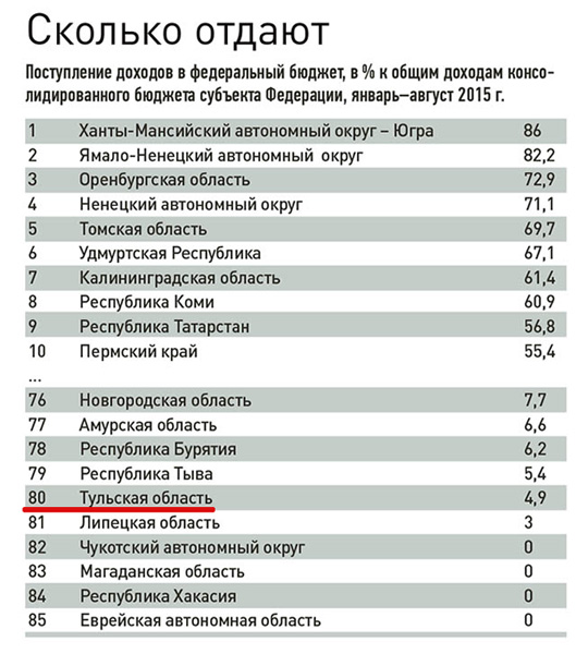Всего 14 регионов отдают в федеральный бюджет больше доходов, чем оставляют себе, оставшиеся – 71 регион – обеспечивают прежде всего сами себя.