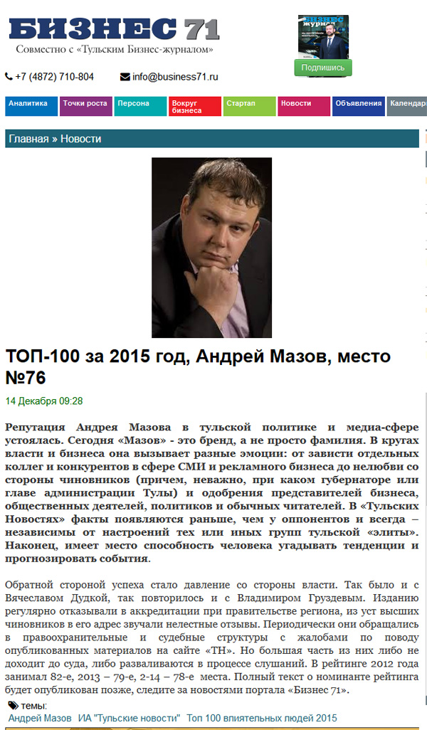 Мазовские мутные эксперты по мазовскому желанию на мазовском сайте определили мазова в лучшие люди Тулы и мазовские дятлодевки на ещё одном мазовском сайте мазова напечатали. Диагноз — к Гудвину за мозгами.