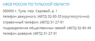 Сотрудники правоохранительных органов еще раз напоминают населению Тульской области о том, что если им станут известны сведения, свидетельствующие о фактах коррупции, звонить надо вот по этим телефонам, а не писать неизвестно кому и неизвестно куда.