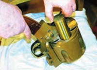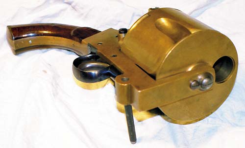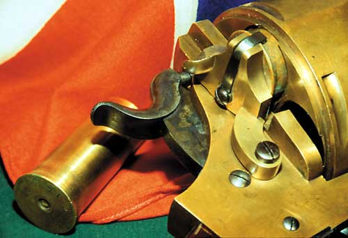Передний срез барабана закрывался круглой латунной пластиной с отверстием диаметром 37 мм. Для снаряжения барабана, необходимо было открыть дверцу и вставить патрон в камору. Одновременно она выполняла функцию экстрак-тора: при её открывании стреляная гильза извлекалась из барабана пружинным зубом, закреплённым на корпусе дверцы. В качестве корпуса сигнального патрона могли использоваться латунные гильзы 37-мм боеприпасов (в том числе и от скорострельной 37-мм пушки системы Гочкиса).