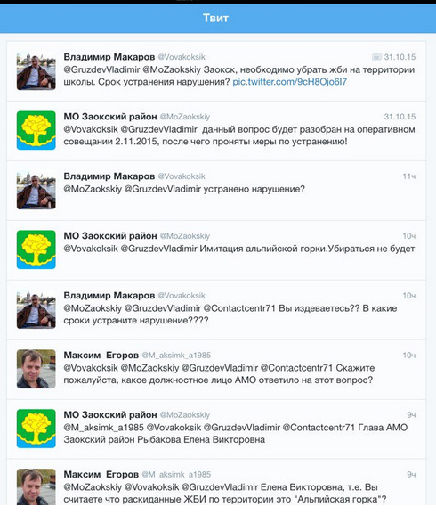 К этому сообщению прилагается восхитительная переписка между другими твиттерянами и заокской администрацией.