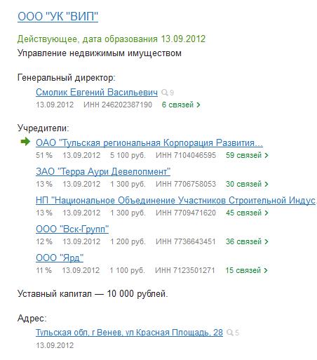 Все рейдеры в гости к нам, в «Тульскую региональную Корпорацию Развития Государственно-Частного Партнерства», она же АО «Корпорация развития Тульской области»