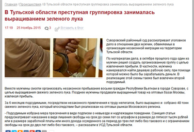 За 6 месяцев подсудимыми, посредством незаконного привлечения к труду нелегалов, было выращено и собрано 48 тонн свежего зеленого лука, который впоследствии был реализован на оптовых рынках Московского региона.